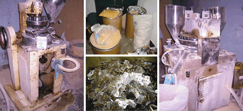 2) 偽造シアリス工場ではメチルアンフェタミン(覚醒剤)製剤も密造されており、それが混入する恐れもありました。